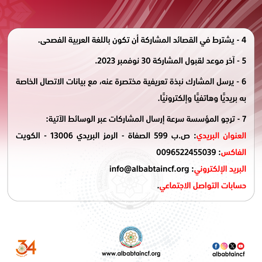 نداء من مؤسسة عبدالعزيز سعود البابطين الثقافية إلى كافة شعراء العربية في جميع أنحاء العالم